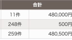 合計259件 → 480,500円を達成